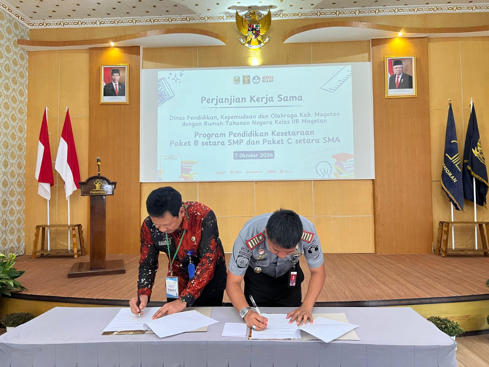 Matalensa-news.com – Magetan – Sebagai tindak lanjut dari kunjungan Kepala Rutan ke Dinas Pendidikan, Kepemudaan, dan Olahraga (Dikpora) Kabupaten Magetan, hari ini, Senin (07/10/2024), Kepala Dikpora Suwata secara resmi meluncurkan program Kesetaraan Kejar Paket B dan C bagi Warga Binaan Pemasyarakatan (WBP) di Rutan Magetan.