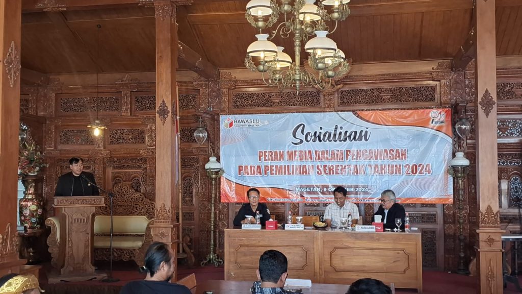 Matalensa-news.com – Magetan — Dalam rangka meningkatkan partisipasi media dalam pengawasan Pemilihan Serentak 2024, sosialisasi peran media digelar di Resto Harmada Joglo, Magetan, pada 9 Oktober 2024. Acara ini bertujuan memperkuat kolaborasi antara media dan penyelenggara pemilu guna memastikan informasi yang akurat dan terpercaya disampaikan kepada masyarakat.